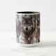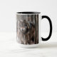 This ceramic coffee mug is shown with a photo print of wild wolves in Yellowstone National Park.