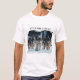 This t-shirt is shown with a photo print of a wolf pack in the forest of Yellowstone National Park.