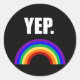 A set of stickers featuring a gay pride rainbow and the word "yep" over the top.