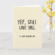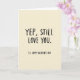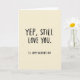 This heartfelt card delivers a simple message of lasting love against a warm cream background that feels soft and inviting. The words “YEP, STILL LOVE YOU.” appear in bold, hand-drawn style lettering, giving the message a personal and sincere tone. Beneath it, a smaller line reads “P.S. HAPPY VALENTINE’S DAY,” adding a thoughtful finishing touch. The gentle contrast between the dark lettering and the creamy backdrop keeps the design easy to read and comforting. Subtle texture in the background adds character without distracting from the message. This card celebrates steady affection and everyday love, making it a meaningful and honest way to share Valentine’s Day feelings with someone special. ❤️💌