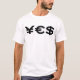 Good luck and prosperity t-shirt featuring the Japanese Yen, the Euro and the United States Dollar. The perfect gift for a Wall Street trader or a person who loves money and finance.