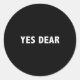 Yes Dear - Funny Sarcastic Slogan Classic Round Sticker