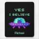 Yes I Believe Alien Flying UFO Spaceship Pixel Art Mouse Pad