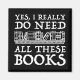 Yes, I Really Do Need All These Books. Funny book lover accessory is a great gift for someone who loves books, reading, libraries, book shops and book stores. Perfect for a librarian, book nerd or bibliophile. Are you a bookaholic? Do you love to read literature and novels in a library or a used book store? Are you an insatiable reader? If you're a geek about books, this funny book quote design is for you!
