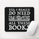 Yes, I Really Do Need All These Books. Funny book lover accessory is a great gift for someone who loves books, reading, libraries, book shops and book stores. Perfect for a librarian, book nerd or bibliophile. Are you a bookaholic? Do you love to read literature and novels in a library or a used book store? Are you an insatiable reader? If you're a geek about books, this funny book quote design is for you!