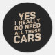 Yes I Really Do Need All These Funny Car Lovers Fo Classic Round Sticker
