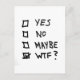 Yes, No, Maybe, WTF Next to Check Boxes Postcard
