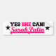 Yes She Can! Show your support for Vice Presidential nominee Sarah Palin with this sporty-style bumper sticker!