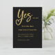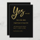 This elegant black and gold wedding design features the phrase “Yes we do!” with the word “Yes” written in a romantic gold script — the sweeping Y cleverly incorporates a heart shape, symbolising love and unity. The minimal chic layout combines bold modern typography with timeless gold accents, creating a luxurious look perfect for formal events, black tie celebrations, or evening weddings. The names are displayed in graceful calligraphy, adding a touch of personal charm to this sophisticated stationery.