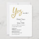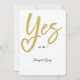 This elegant white and gold wedding design features the phrase “Yes we do!” with the word “Yes” written in a romantic gold script — the sweeping Y cleverly incorporates a heart shape, symbolising love and unity. The minimal chic layout combines bold modern typography with timeless gold accents, creating a luxurious look perfect for formal events, white tie celebrations, or evening weddings. The names are displayed in graceful calligraphy, adding a touch of personal charm to this sophisticated stationery.
