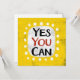 "Yes You Can" is a cute inspirational or motivational quote with a white accent shape surrounded by white textured whimsical dots.
