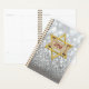Messianic planner with the name of Yeshua in Hebrew, silver glitter background, and gold Star of David for anyone who wants to organize their days.