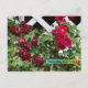 Yesterday and Today. Red roses on a white trellis in different stages of blooming.
