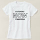 The T-shirt design features the captivating phrase "Yesterday Now Tomorrow," strategically positioned to draw attention and spark curiosity. The font choice is bold yet approachable, ensuring the message stands out while remaining effortlessly readable. The words "Yesterday," "Now," and "Tomorrow" are each highlighted in a distinct colour, adding visual interest and depth to the design. This clever arrangement invites interpretation, prompting viewers to contemplate the passage of time and the interconnectedness of past, present, and future. Whether worn casually or as a conversation starter, this T-shirt serves as a stylish reminder to embrace the present while acknowledging the continuum of time.