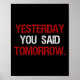 Yesterday You Said Tomorrow Motivation Quote Hard Poster