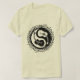 A Yin Yang symbol with acoustic guitars, surrounded by circular notation (a rondo?). Black & white art, on t-shirts, buttons, stickers, gifts.
