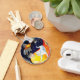 A unique and striking take on the traditional Yin yang symbol, with a sun cat and a golden betta fish circling around each other inside a giant bubble of water and fire.