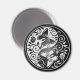 This white and black yin yang design features two stylised butterflies. Flowing swirls and leaves surround the butterflies while a single rose appears on each side. Subtle highlights appear on this eye-catching pattern which creates a light shine and rich texture on the surface. This unique yin yang design makes a fun and stylish magnet.