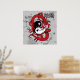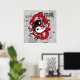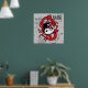 Yin yang Chinese symbol and dragon poster print that features a dragon holding the yin yang 陰陽 symbol and the Chinese character of the yin yang in black, white, red and grey.