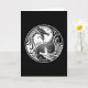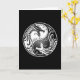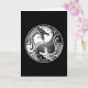 This stunning yin yang design features two stylised tribal dragons. Intricate lines and swirls decorate both sides of this traditional symbol creating a beautiful pattern. The two dragons flow from the bottom of the teardrop and have their mouths wide open in an aggressive stance. This unique yin yang makes a stylish card design.
