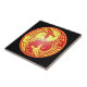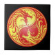 This stunning yin yang design features two red and yellow tribal dragons. Intricate lines and swirls decorate both sides of this traditional symbol creating a beautiful pattern. The two dragons flow from the bottom of the teardrop and have their mouths wide open in an aggressive stance. This unique yin yang makes a stylish tile design.