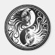 This unique yin yang design features two stylised kittens. The faces of the two cats appear in the large teardrops of the yin yang with long flowing lines tapering up and down to the two tips. This stylish kitten design is a fun and unique example of this symbol for the balance of nature.