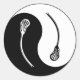 Yin-Yang Lacrosse. Black and white yin-yang symbol with curved lacrosse sticks inside.