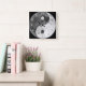 Yin Yang Moon Elegant Numbers Black and White Square Wall Clock
