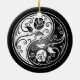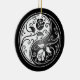 This beautiful yin yang design features two stylised tribal roses. Intricate black and white swirls decorate both sides of this traditional symbol creating a delicate pattern. The two flowers flow from the bottom of the teardrop on either side with leaves growing from the stems. This unique yin yang makes a stunning and stylish ornament design.