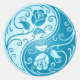 This beautiful yin yang design features two stylised tribal roses. Intricate blue swirls decorate both sides of this traditional symbol creating a delicate pattern. The two flowers flow from the bottom of the teardrop on either side with leaves growing from the stems. This unique yin yang makes a stunning and stylish sticker design.