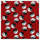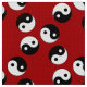 Yin yang symbol pattern in black, white and red.