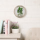Ylang-Ylang vintage style watercolor illustration wall clock. Green flowery leaves of the perfume tree. Cananga odorata. The essential oil derived from the flowers is used in aromatherapy.
