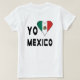 Women's T-shirt, with design on both sides, uses a heart shaped Mexican flag instead of the word LOVE, or AMO. Design reads YO AMO MEXICO, or I LOVE MEXICO. The flag is green, white, and red with an eagle in the centre. Great for family reunions and Cinco de Mayo. Great gift for any occasion.