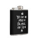 Well made flask, a little better than I had expected. Flask came in clear plastic box which gave it a nice presentation when I took it out of the zazzle packaging. Image is not printed on flask but on sticker. Don't know how this will hold up I haven't used it yet. This would make a Great gift! I plan to purchase more for friends! Cheers. I thought a little brighter than computer. Very crisp, writing wasn't