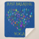 Blue YOGA Sherpa blanket with heart. "JUST BREATHE"