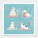 A funny design in pink and blue, of cats practicing yoga. A cat pattern perfect for cat lovers and yoga