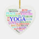 One of a kind ornament with inspirational words associated with yoga, arranged in a heart shape