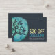 YOGA Discount Coupon Loyalty Watercolor Teal Tree