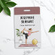 Destei's yoga theme illustration of a woman doing the Dancer Pose / Natarajasana. The woman is standing on one leg while her other leg reaches upwards and connects with one of her hands. The woman's other hand is pointing forward as she balances herself. The woman is wearing a pink colour tank top and dark grey capri type leggings that expose her calves and toes. The woman's brown hair is tied on a bun behind her head with a brown colour hair tie. The woman is standing on a pinkish colour yoga mat. There is a green leafy plant and a round yellow colour exercise ball next to the woman as well. There are also two personalizable text areas ideal for a custom name and profession such as a yoga instructor, for example.