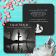On front of card is as black and white picture of a yoga master in tree pose overlooking a shimmering water reflection. On the back of card is woman sitting with legs crossed. Customise card with your business details.