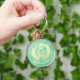 Yoga Studio Meditation Instructor / Life Coach / Healer / Reiki Master / Massage Therapy Keychain Template - Elegant Calligraphy Faux Gold Foil Yoga Meditation Easy Pose / Sukhasana Pose with ZEN Symbol and OM Symbol on Green Gold Foil Texture Background.