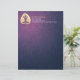 Yoga Fitness Studio / Meditation Instructor / Personal Trainer / Life Coach / Healer / Reiki Master / Massage Therapy Letterhead Template - Modern Faux Gold Foil Bodhi Leaf Cutting as Yogi in Easy Seat pose / YOGA Easy Pose / Sukhasana Pose on Deep Purple Grunge Background.
