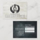 Modern Yoga Studio Meditation Instructor / Life Coach / Healer / Reiki Master / Massage Therapy 10 Class Pass Loyalty Card Template - Elegant Black and White Calligraphy Yoga Meditation Pose / Easy Pose / Sukhasana Pose with ZEN Symbol and Bodhi Leaf on Vintage White Wood Background.