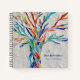 This decorative notebook features a print of a rainbow-coloured Tree of Life on a pale grey background.