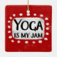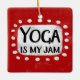 "Yoga Is My Jam" is a fun text design with a white accent shape surrounded by white whimsical textured dots.