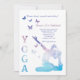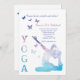 A beautiful yoga invitation featuring a female in the king pigeon stance. The word "yoga" is pre-printed and accented with fluttering butterflies.