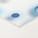 Bubbles in varying sizes, rising from bottom to top of mat. Blue bubbles dominate, but there are also some small white/clear bubbles. All bubbles have a three dimensional look. Back of mat is solid blue.