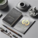 Yoga Studio Meditation Instructor / Life Coach / Healer / Reiki Master / Massage Therapy 5 Class Pass Loyalty Card Template - Elegant Calligraphy Faux Gold Foil Yoga Meditation Easy Pose / Sukhasana Pose with ZEN Symbol on OM Symbol Silver Floral Damask Paper Background.
