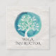 Yoga Meditation Instructor Elegant White Teal Tree Square Business Card