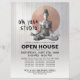 Modern Yoga Fitness Studio / Meditation Instructor / Personal Trainer / Life Coach / Healer / Reiki Master / Massage Therapy Open House Flyer Template - A woman with body tattoos In A Yoga Lotus Meditation Pose (Lotus Position / Padmasana).